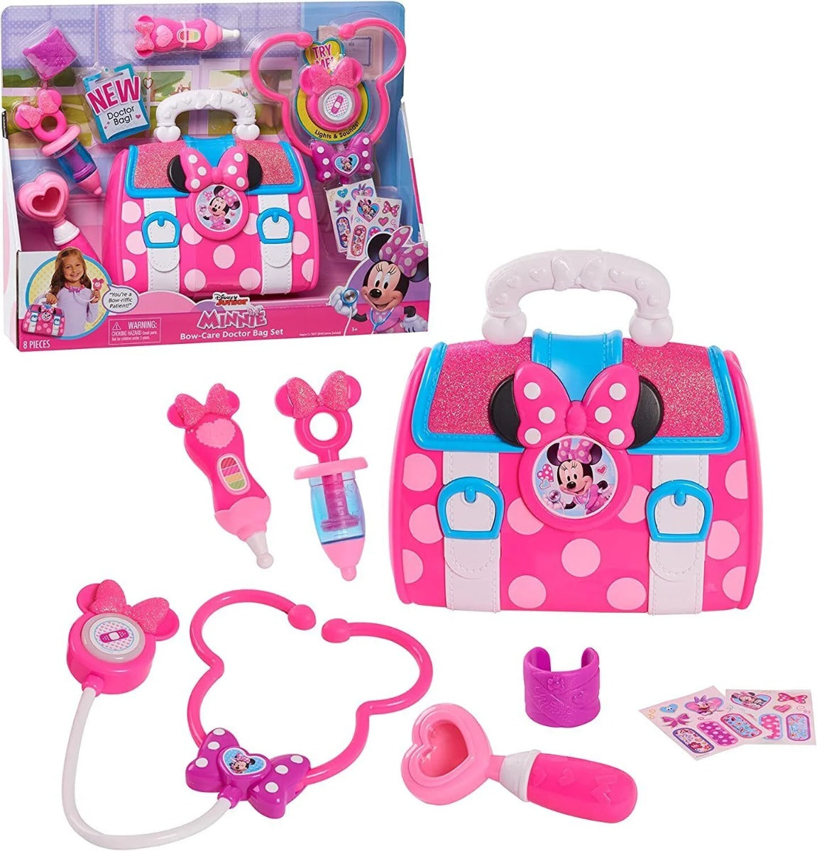 مجموعة حقيبة الطبيب من ديزني ميني ماوس هي مجموعة لعب رائعة تُجسّد عالم ميني ماوس. تتميز هذه المجموعة بحقيبة طبيب ملونة مزينة بفيونكة ميني الشهيرة، وتتضمن مجموعة متنوعة من الإكسسوارات الممتعة والواقعية التي تُشجع على اللعب التخيلي. إنها مثالية للأطفال الصغار، حيث تُمكّنهم من تقمص دور الطبيب المُهتم والانخراط في اللعب التخيلي مع تنمية مهاراتهم الاجتماعية والحركية.