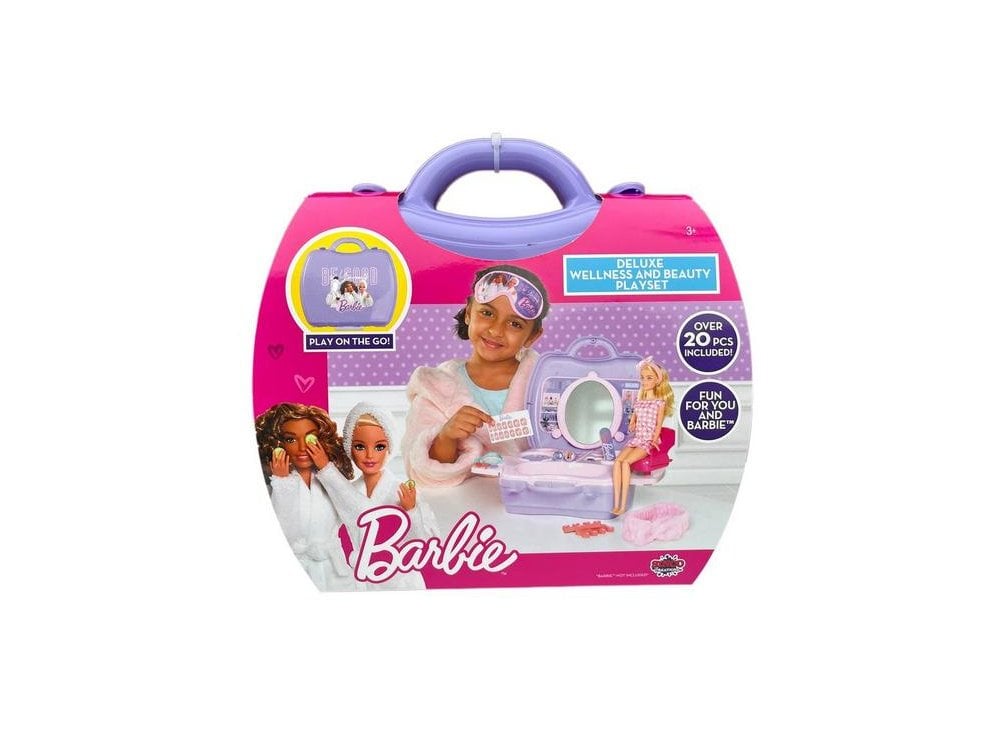Let your little one's imagination run wild with the Barbie Beauty & Glam Playset. This comprehensive set includes everything needed for a glamorous pretend beauty salon experience. The set features a Deluxe Wellness & Beauty Case that opens up to reveal a world of possibilities. The attachable Barbie chair allows your child to give Barbie the ultimate pampering session. With toe separators, a nail sticker sheet, a bracelet, a nail file, a headband, and more, your child can create endless stylish looks. The set even includes face masks, rings, and sticker sheets for added fun. Let your child's creativity shine with the Barbie Beauty & Glam Playset.BARBIE NOT INCLUDED