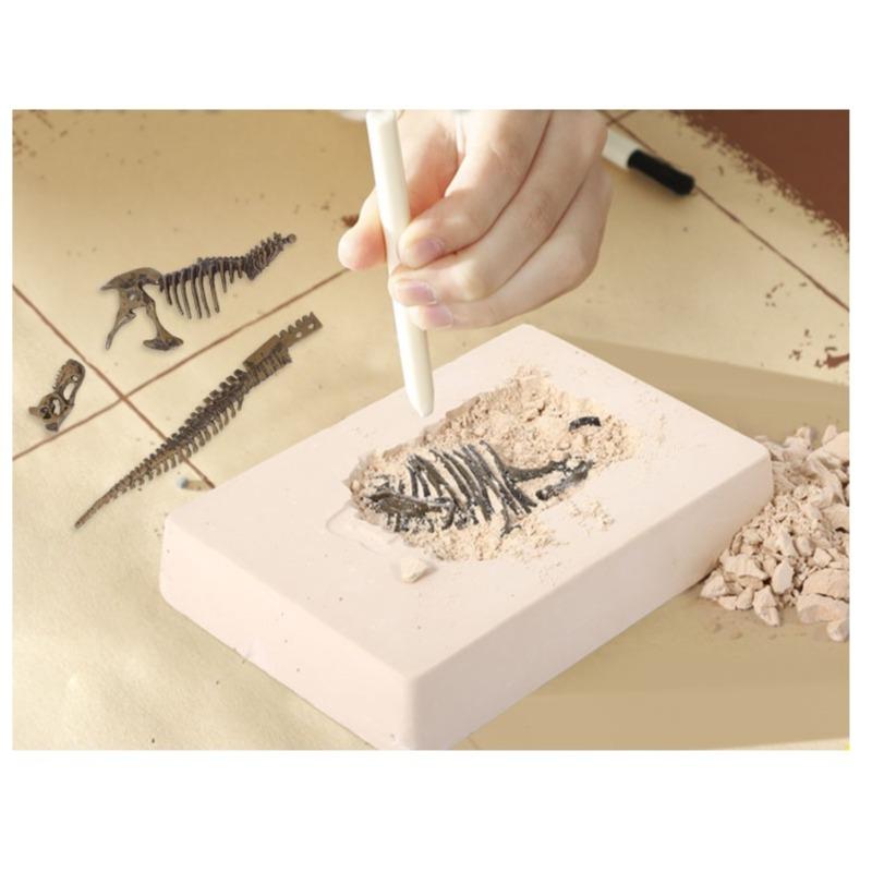 Considering that digging dinosaur fossils is done by beating, brushing, shoveling, splicing, etc., it can allow children to understand the fun and function of archaeological excavation and exercise their senses.