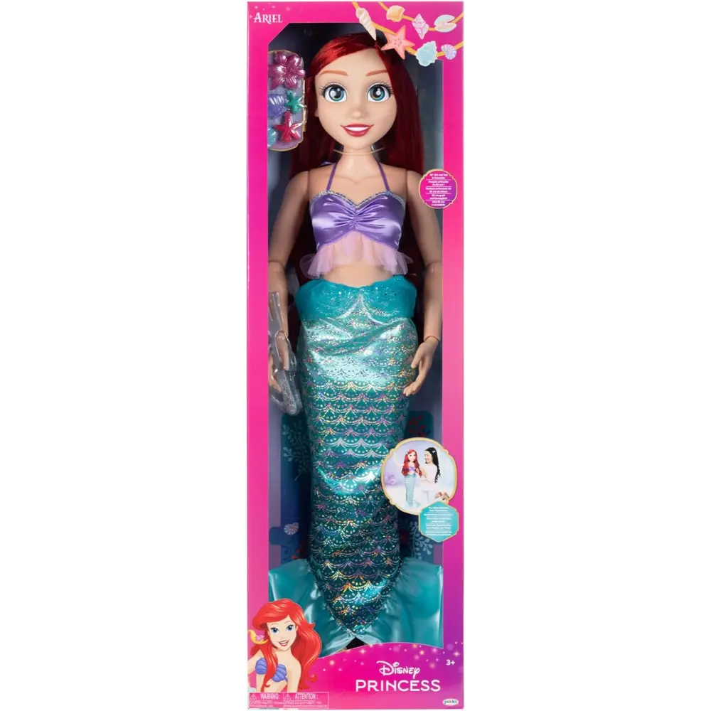 The Disney Princess Ariel Doll Playdate with Accessories is a magical and enchanting toy that brings the beloved Little Mermaid to life in a big way! Standing at an impressive 32 inches tall, this doll is perfect for kids who want to immerse themselves in Ariel's underwater world. The doll features vibrant red hair, a sparkling mermaid tail, and a beautiful seashell top, making her look just like the classic Disney Princess.