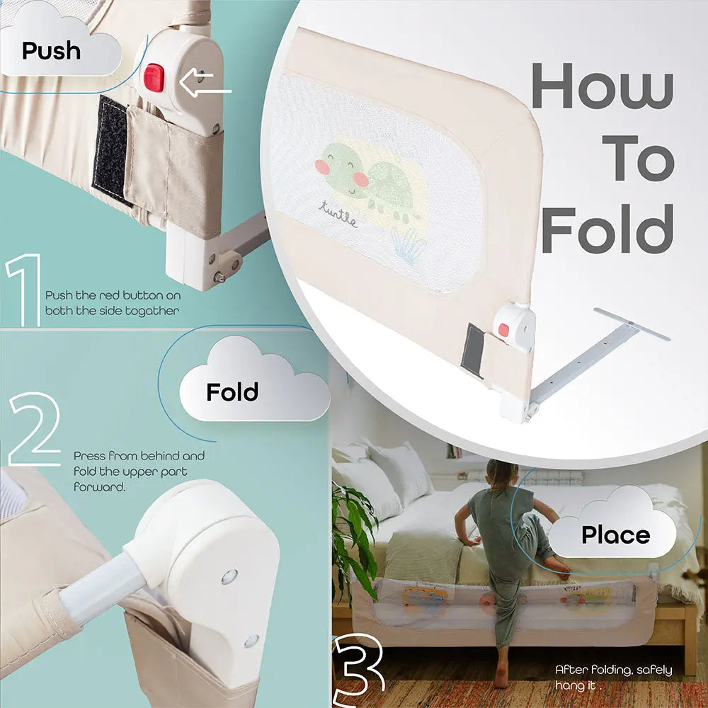 It is easy to assemble, install and fold, and can be folded down when a parent wants to sit near the bedside.