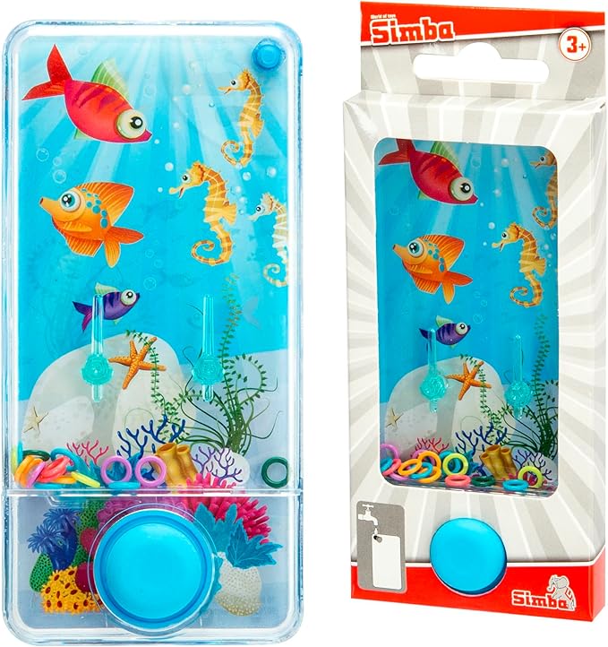 The Simba Water Feature is a compact, handheld water game designed for children aged 3 and up. This portable toy challenges players to launch rings onto pegs using water pressure, enhancing hand-eye coordination and focus. Its durable plastic construction and easy-to-use design make it ideal for travel or on-the-go entertainment.