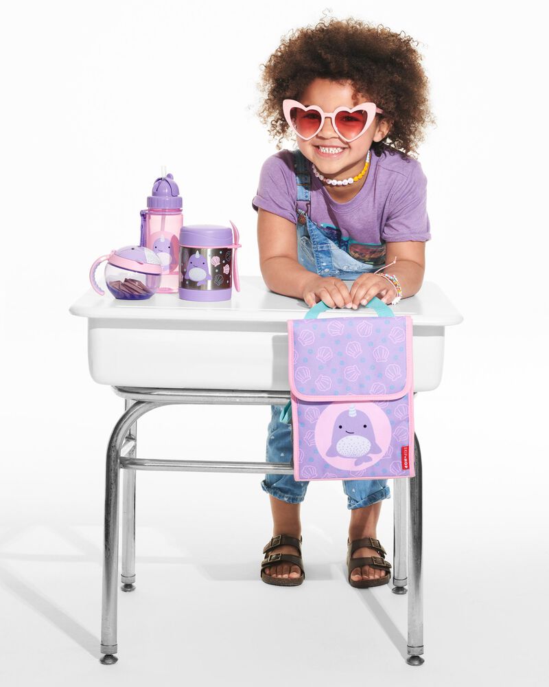 A big step-up from a sippy cup, our cute straw bottle helps ease the transition to a "big kid cup" with the protection of a flip-top lid. Featuring cute Zoo characters and a handy grab strap, it's a toddler must-have for water, juice or whatever your little one likes to drink.