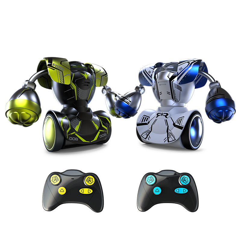 Triggers "Tornado" mode, a super-powerful strike with a 360° punch. Move forward, strike and generate "Tornado" mode to knock out your opponent, Pack of 2 remote-controlled robots. Sound and light effects. 6 "AA" batteries (robot) and 4 "AAA" batteries (remote control) not included.